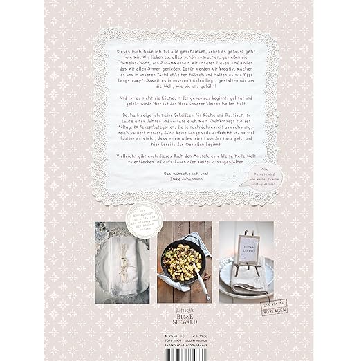 In diesem Buch verbindet Autorin Imke Johannson kulinarische Inspirationen mit kreativen Gestaltungsideen für Küche und Essplatz. Mit abwechslungsreichen saisonalen Rezepten aus regionalen Zutaten zeigt sie, wie sich der Alltag genussvoll und zugleich unkompliziert gestalten lässt. Ergänzt werden die Kochideen durch stimmungsvolle Deko-Inspirationen, die den Esstisch im Rhythmus der Jahreszeiten immer wieder neu erstrahlen lassen – von frühlingshaften Akzenten über sommerliche Leichtigkeit bis hin zu gemütlicher Herbst- und Winteratmosphäre.