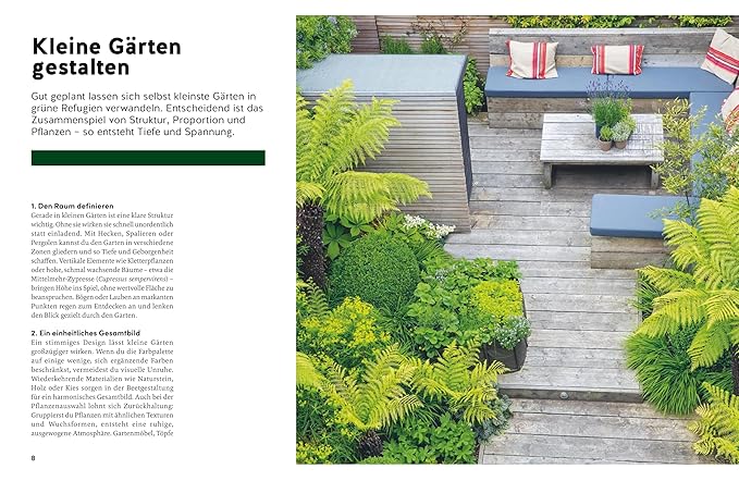 Das Haus ist fertig, die Wohnung eingerichtet – aber draußen herrscht noch Chaos, Leere oder einfach Langeweile? Dann ist dieses Buch genau das Richtige für Sie! Small garden beauty zeigt, wie auch auf kleinem Raum wunderschöne grüne Oasen entstehen können – sei es auf dem Balkon, der Terrasse oder im kleinen Stadtgarten.